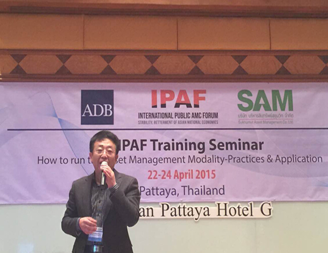2015年4月22日-24日,浙江省浙商資產(chǎn)管理有限公司首席戰(zhàn)略官李傳全博士等3人應(yīng)邀參加了在泰國芭提雅舉行的第三屆IPAF(International Public AMC Forum,國際公共資產(chǎn)管理公司論壇)培訓研討會,與亞太地區(qū)的十多家資產(chǎn)管理公司、專家學者等就不良資產(chǎn)收購處置等專題進行面對面交流。
