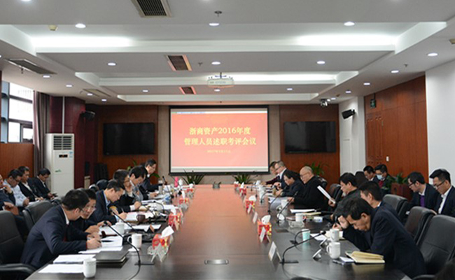 2017年1月11日,浙商資產管理有限公司在公司大會議室召開2016年度管理人員述職考評會議,公司本級中層管理人員及成員公司主要負責人近50多人參加了會議。會議由黨委書記鄭順民主持,公司領導班子成員參加了會議。