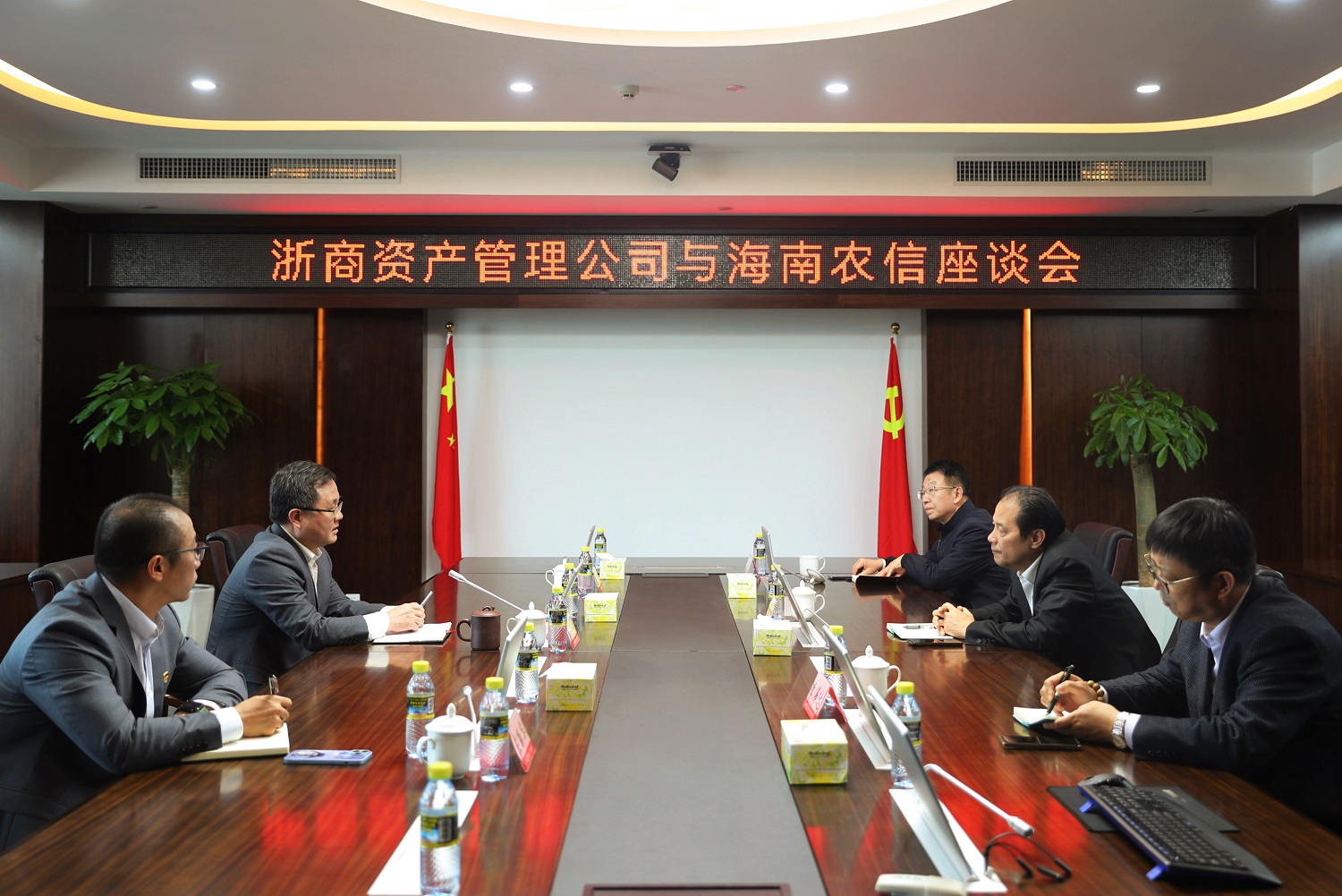 2月23日上午,孫建華一行與海南聯(lián)合資產(chǎn)董事長張波,黨委副書記兼總經(jīng)理李賢俊等進(jìn)行座談交流,積極探討業(yè)務(wù)合作方向,共同探索地方AMC高質(zhì)量發(fā)展路徑。孫建華表示,自成立以來,浙商資產(chǎn)深入貫徹落實浙江省委、省政府的安排部署,緊抓改革發(fā)展契機,矢志踐行初心使命,履行國企擔(dān)當(dāng),深耕不良資產(chǎn)處置與經(jīng)營主業(yè),設(shè)立了五大區(qū)域分公司,實現(xiàn)覆蓋全省、走向全國的區(qū)域布局,希望雙方開展常態(tài)化溝通交流,助力行業(yè)高質(zhì)量發(fā)展。張波對孫建華一行表示熱烈歡迎,并介紹了海南聯(lián)合資產(chǎn)歷史沿革、經(jīng)營管理和業(yè)務(wù)布局等情況。他表示,一直以來,浙商資產(chǎn)在業(yè)務(wù)模式、業(yè)務(wù)布局等方面先行先試,為行業(yè)轉(zhuǎn)型做出了有益探索,是海南聯(lián)合資產(chǎn)學(xué)習(xí)的對象;當(dāng)前,海南聯(lián)合資產(chǎn)致力于摸索出一條市場化道路,而浙商資產(chǎn)在市場化治理機制上引領(lǐng)行業(yè),實現(xiàn)了國企治理與市場化規(guī)律全方位融合,對于海南聯(lián)合資產(chǎn)進(jìn)一步推進(jìn)高質(zhì)量發(fā)展具有重要借鑒意義;自由貿(mào)易港的建設(shè)將為海南未來的發(fā)展帶來重大轉(zhuǎn)機,希望與浙商資產(chǎn)開展多層次合作,形成資源和優(yōu)勢互補,共同助力海南自貿(mào)港建設(shè)。