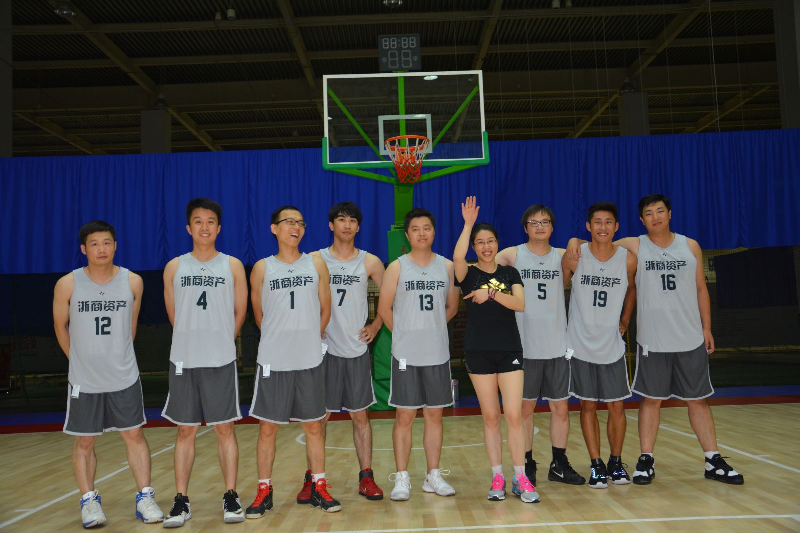下半場,各隊隊員漸入佳境。浙易球員按照中場休息時的戰(zhàn)術布置,默契不斷飆升,不時創(chuàng)造絕妙傳球與精準投射。浙商本部球員也還以顏色,不斷利用個人能力沖擊籃筐。雙方隊員積極拼搶,貼身防守,充分體現(xiàn)了浙商資產(chǎn)全體員工“積極、向上、健康、陽光”的精神風貌。最終,比賽在一片歡聲笑語中拉下了帷幕。